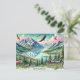 Här har vi ett vykort för vattenfärg-stil-resor för Lycklig-jorddagen, med ett stort bergsområde med toppar med snö-tak, täta gräs-skogar och ett stillastående sjö som återspeglar miljön. 🌿 🌎 I scenen finns det havsörn, betande älk och nyfikna rävar som skapar ett majestätiskt, naturomvandlat vibe. Texten "Skydda vår planet!" är i elegant, flyter skript med vattenfärgen struktur,
