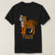 Skydda vilda djur konstnärliga illustrationstiger manar svart t-shirt. En exklusiv i extra med tjockt text med tiger mönster. Stor grafisk brun tiger på svart bakgrund.