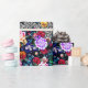 Gör ett djärvt påstående med denna vildblandning av blommor och löv i varje färg, på en svartvit mazebakgrund.