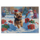 En spiritad Skye Terrier springa glatt genom snövinteckan och med en frisk röd julhatt. Denna charmerande utformning belyser rasens långvariga jacka, elegantens kontur och den särskilda karaktären när den tar upp julhelgens värme och glädje. En härlig vinter-fullt av festlig cheer.