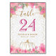 Skylt för bröllopsplatser med rosa pumpa och blomm bordsnummer