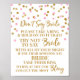 Skylt för bröllopsspel för brudvisning i ljusrosa och guld konfettimönster. Observera att glittereffekten är enbart en fotografisk effekt.
