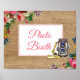 Skylt för fotobås med rosa blommor på bröllop