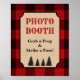 Skylt för fotostuga - ta en rekvisita och slå en pose med rödrutig timmerhuggardesign. Perfekt för din timmerhuggar-inspirerade fest!