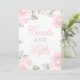 Väg dina gäster till gåvbordet med denna romantiska skylt "Kort och gåvor" med mjuka rosa akvarellrosor och grågröna blad. Elegant skrivstil och serif-typografi i rosa och grå toner skapar en drömlik, feminin känsla som passar perfekt till alla blush- eller trädgårdsinspirerade bröllop. Ett vackert slutande touch för din mottagningsdekor. All text är helt anpassningsbar.