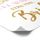 Råd och välgångsönskningar till bruden skylt för bröllopsfest i ljus rosa och guld konfetti mönster. Observera att glittereffekten är enbart en fotografisk effekt.