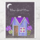 En magisk, kvällsinspirerad digital collage av en stuga i nyanser av periwinkle och djupt indigo. Med en halvmåne och stjärnhimmel fångar denna fantasifulla bit den tysta rofylldheten hemma.