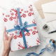 Slå in papper rulle med röd julhjort planlägg presentpapper