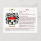 Allt på och inom en Jacka av Arm har en innebörd, inklusive färg. Texten innehåller en beskrivning av Jackat av Arm, Vapensköld (om det finns någon), Familjemotto (om det finns någon), ursprung i namn, namn och vad varje avgift och elak i färg ska innehålla. Du har inte bara en utskrift av "Familj Namn Jackar av Arm", utan du har också innebörden av allt i den. Som referens användor vi "Rietstap's Armorial General", "Encyclopedia of Heraldry", "Fairbairns Bok of Vapensköldars, "Bok of Family Crests", "General Armory of England, Scotland, Ireland, and Wales", "HPS Surname". Om det finns en Vapensköld och/eller Family Motto, lägger vi till den. Vårt mål är att vara så exakt som möjligt.