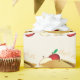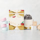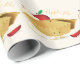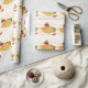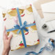 Inpackning av papper med ett le äpplepajtecken och äpplen.