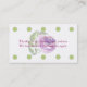 Det här affärskortet har en framsida med pastelllilak och grönt rand med en lila vattenfärg ro. Det är designat eftersom ett slagit kort lojalitet mot småföretag. De slående kretsarna matchar rand färg på baksidan med ett tacksamhetsbudskap och en minskad opacitet lila vattenfärgen ro. Fyll i fält med informationen för fram- och baksidan i mallen, TA BORT all text eller klicka på anpassa för att välja ett typsnitt stil, storlekt och färg som du vill använda.