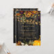 Vacker rostig orange och mörk burgundisk höst faller blommor och pumpar gräns med golden twinkle ljus över en mörk brun lingbakgrund som skapar en charmig elegant bröllop inbjudan med ett handskript guld typografi för trendig. +++++++++ Enkel att anpassa med dina uppgifter! Lämplig för traditionell höstfallsskorpa | LAND | Jordbruksföretag | Bakgård bröllop.