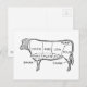 Slaktarens diagram över nötköttskal, ko, slaktare, vykort