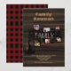 Detta är en unik inbjudan till familjeåterträff i form av ett fotokollage. Den har en rustik design med ett träd och fält för inbjudantext och dina egna familjefoton. Buffalo-ränder och rustik träd-tema.