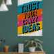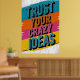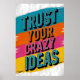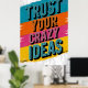En djärv och energisk grafisk design med den skarpa formuleringen "TRUST ERA CRAZY IDEAS" i vibrerande, tryckt typografi.