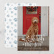 Ett julkort perfekt för husdjursägare! Den har ditt favoritfoto av ditt husdjur och orden ”släpp loss glädjen” i ett roligt, blomstrande teckensnitt. Baksidan har ett mönster med tassavtryck och snöflingor.