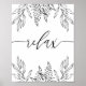 Slappna av Skripturen Blåväggskonst poster- svart och vitt löv