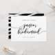 Snyggten blir mitt Junior Bridesmaid-kort med ord "junior bridesmaid" i ett slappt kursivt skript i svart mot en vit bakgrund. Kortet har en svart baksida med överlappande vitt linjer. Anpassa den genom att ersätta platshållartexten. Om du vill ha fler alternativ som att ändra teckensnittet och det är storlekt/färg eller mellanrummet mellan brev klickar du på knappen "Anpassa". *Observera att Zazzle Watermark som visas i zoomförhandsvisningen INTE visas på den färdiga tryckta produkten. © Rosewood and Citrus