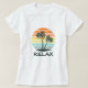 Handflatan träd, strand och solnedgång i stil. Slappna av.