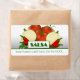 En illustration av tomater, lök, paprika av hett och cilantro på en konservetikett. Etiketten har en textmall för din anpassning. ©2013charmainepaulson