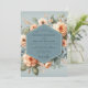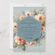 An elegant and artistic composition featuring a delicate arrangement of botanicals. Soft, painterly roses in shades of pale peach and apricot bloom gracefully against a muted slate blue background. Complemented by subtle sage green foliage and tiny floral accents, this design evokes a timeless and romantic atmosphere.