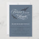 Slatblåa begravningsinbjudan med häftiga fåglar som ramlar in för evigt i våra hjärtan i vackert snabbt typsnitt. Lägg till ett foto på den andra sidan. Personlig med en foto på baksidan.