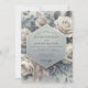 This design evokes a serene, ethereal mood with its delicate floral pattern in soft slate blue and cream hues. Lush, painterly roses and other blossoms create a romantic backdrop, perfect for a whimsical celebration. The overall effect is one of soft, sophisticated charm.