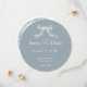 This elegant slate blue French Country wedding stationery collection features soft dusty blue backgrounds, adorned with delicate white hand-drawn line art—including classic bow accents and intricate botanical wreath borders—paired with a blend of romantic script calligraphy and refined serif typography. The design evokes a timeless, rustic-chic French countryside vibe, perfect for classic, garden-style, or vintage-inspired weddings.