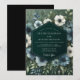 A dramatic and elegant design showcasing a lush botanical arrangement. Painterly anemones in shades of dusty slate blue and soft ivory bloom against a dark, moody backdrop. Rich emerald green foliage adds depth, creating a sophisticated and romantic atmosphere for your special day.