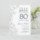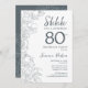 Slate Blue Vit Botanisk Överraskning 80-års inbjudan. Minimalistisk modern feminin design med botaniska accenter och typsnittsmanus. Enkel blommig inbjudningskort perfekt för en stilfull kvinnlig överrasknings födelsedagsfirande.