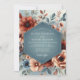 Embrace a moody and romantic atmosphere with this elegant artistic design. A sophisticated color palette of slate blue, dusty blue, and warm copper tones creates a stunning autumnal mood. The arrangement features beautifully rendered anemone blossoms and delicate foliage, painted with soft, painterly brushstrokes. This botanical artwork is perfect for a chic and memorable autumn affair.
