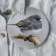 Visa av kärlek med naturen med den här knapp som är tematisk för vilda djur och växter och som har en ovanlig variation av en vanlig besökare på bakgården! Under den första fullt i snö i Metro Vancouver, British Columbia, Kanada, såg man många fluffade upp songfåglar på bakgården på fruktens träd under större delen av dagen, däribland minst två Cassiar Mörk-Eyed Juncos (en intergrad av Slate-Färgad och Oregon-sorter), som detta knubbig ringa nummer här. Fotografi den 9 december 2016. Baserat på originalfotografiet av W.H. Sim. Alla Höger reserverade. Se mer på zazzle.com/walkswithnature