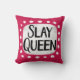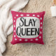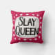 En roligt och söt typografisk design som säger "Slay Queen". Det är svart text på en vit rektangel med funky, lekfulla vita prickar som omger den, allt på shock rosa bakgrund.