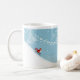 Varma upp i vinter med ditt favoritkaffe, te, choklad med hett eller någon annan hett med den här något nostalgiska vinscenen! Det är blå himmel med nedfall i snöflingor, träd, snögubbe och snö täckte backe med en ledare som njuter av allt. Bra bara dagar. Det här är ett underbart mugg som kommer in i vintersäsongen. Sätt fart och ha en boll!