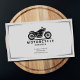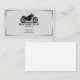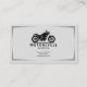 A professional business card with subtle gray accent lines framing and featuring a sleek black motorcycle silhouette rendered in a minimalist style with chrome accents and sits prominently in the upper portion. It could also be used for automotive or motorcycle-related services (sales, shop, repair, motorcycle school, etc).