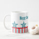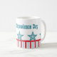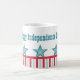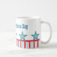 Vibrant och roligt Sleek Stars och stripes Mugg med chic rand och fem funkys- och coola stjärnor. I snyggten mugg kan du visa din patriotiska sida medan du njuter av din favoritdryck! Anpassa med din egen text till ge den här designen personligt! Den här utformningen passar också för minnesdagen!