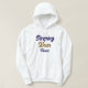 This hoodie is much better than I expected. top quality, true sizing, and really comfy. I was a bit worried that the lettering would be too dark on the navy blue hoodie, but once it arrived it was perfect. Easy to see the words, and the quality of the wording is fabulous. I will be buying more hoodies in future