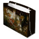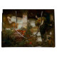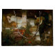 This design features a painting by the Victorian-era British artist Edward Frederick Brewtnall (1846–1902). It is a richly detailed Pre-Raphaelite-influenced painting that illustrates a key moment from the classic fairy tale: the princess lying in her enchanted sleep, surrounded by layers of wild roses that have grown over the palace during her hundred-year slumber. The roses add both beauty and danger to the scene: delicate blossoms contrast with the sharp thorns, symbolizing the enchantment’s mixture of protection and peril. Their encroachment also heightens the sense of isolation, as if the outside world has vanished behind a barrier of living bramble. Sleeping Beauty lies gracefully on an ornate bed draped in rich fabrics, her body relaxed and her expression serene. The soft lighting creates a warm glow around her figure, giving her an almost ethereal presence. Brewtnall emphasizes her stillness and her perfect calmness, suggesting both innocence and a dream world untouched by the passing of time. Brewtnall’s meticulous attention to detail, typical of artists influenced by the Pre-Raphaelite movement, enriches the scene. Every fold of fabric, every rose petal, and every carved surface is rendered with care, drawing viewers into a world that feels tangible yet dreamlike. The painter's palette (warm browns, deep greens, soft pinks, and glowing golds) reinforces the atmosphere of magical stillness. The long-awaited prince can also be seen as he finally reaches the enchanted princess. The prince, dressed in rich medieval garments, ascends a small flight of steps leading to her bed. Brewtnall paints him with a mixture of awe, caution and earnest devotion. He gazes directly at her face, transfixed by her beauty and by the profound importance of this moment. His body leans forward slightly, hesitant but resolute, capturing the tension of a man on the cusp of breaking an ancient spell. He is not yet touching her; the scene is suspended in that breath of time before action, adding emotional and narrative intensity. The Prince holds a spear in one of his hands, suggesting that he has had to fight to reach Sleeping Beauty. What makes Brewtnall’s version especially compelling is that he does not rush toward the dramatic climax. Instead of showing the awakening kiss, he invites the viewer into the contemplative moment just before it occurs. He is both intruder and saviour, the first living soul to enter the room in a hundred years, standing before a woman whose life is suspended like a musical note held indefinitely. The roses that surround Sleeping Beauty are not simply background decoration. They behave almost like characters. Their vines creep over bedposts, crawl across steps, and clutch at the prince’s approach with curling tendrils. The thorned vines form natural barriers, as though the castle has tried for decades to shield her, preserve her or discourage the unworthy. They frame her bed like an organic cathedral altar, and the prince climbs toward it as if moving through a sacred ritual space. The original artwork depicting Sleeping Beauty was painted by Edward Brewtnall sometime before 1902.