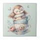 Sleeping Owl in Stacked Floral Teacups Kakelplatta