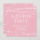 Sleepover-födelsedagsfest med ett dubbelt stjärnformat teckensnitt på en rosa bakgrund med vit stjärngrafik. Vänd över vårt moderna inbjudan för att se en samordning tillbaka för en speciell beröring i extra.