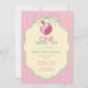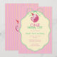 Celebrate your little one’s first birthday with this charming invitation featuring a sleepy pink cat in a tiny party hat, framed inside a soft cream label with mint green bow details. The pink and yellow striped background adds a cheerful retro touch, making it perfect for a sweet cat-themed 1st birthday party. Personalize the text to create the perfect invite for your celebration.