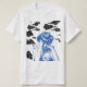 A serene and minimalist design of a young woman drawn in soft blue tones, exuding a calm and tranquil vibe. She is surrounded by dark, swirling clouds, adding a touch of mystery and contrast. The design, titled 'Sleepy', captures the essence of peaceful contemplation, with smooth lines and a dreamlike atmosphere that evoke a sense of quiet introspection.