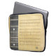Denna Neoprenelaptop sleeve 13-14" presenterar avbilda av delen av en banjofretboard i trä med det pärlemorfärg inlägg, och 4 stränger på en bakgrund av notblad på att åldras det guld- gula manuskript. Det mörka trät av fretboarden på de vänstra och guld- tonerna av manuskript på höger ger för en slå färgkontrast. Please noterar att designen inte skrivs ut på baksidaen av sleeven. Det är svart.