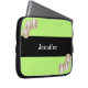Denna bärbar datordatorsleeve dekoreras med baseball på en kiwigrönt och svarten görad randig bakgrund och personlig med namn eller annan text. Det är lätt att ändra eller att ta bort exempeltext. Ett vilket underbart långt som skyddar din bärbar dator. Underbar gåva för basebollspelare, fläktar eller lagledarear. All rättigheter reserverade © Alan 2014 & Marcia Socolik.