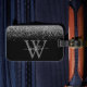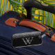 Modern bagagemärke i svart och smal glitter, elegant adorberad med ditt manusmonogram, först namn och främst.