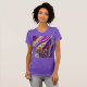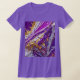 This women's slim-fit t-shirt is both stylish and comfortable. It comes in a variety of colors and sizes, with an abstract design in shades of purple, white, and gold. This unique t-shirt will add color and interest to your style!