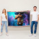 SlipperyJoe muskulär man underhåller en pulserande nyans blå teal lila molnliknande abstraktion gay pride ger LGBTQIA konstnärliga drömliknande abstrakt energi psykedelisk surrealism kosmisk effekt surrealistisk och fantasifull bakgrund som vilar över bröstet
