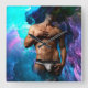 SlipperyJoe muskulär man underhåller en pulserande nyans blå teal lila molnliknande abstraktion gay pride ger LGBTQIA konstnärliga drömliknande abstrakt energi psykedelisk surrealism kosmisk effekt surrealistisk och fantasifull bakgrund som vilar över bröstet