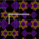 SlipperyJoe's Hanukkah-tema bild gyllengul Davidstjärna blå ljus med orange lågor Menorah-inspirerad konst presentidé Judisk identitet andlighet högtid retro djärv symmetrisk mönster diamantformad rutnätsbakgrund blandar tradition och livfull design lila svart schackbrädeffekt Hebreisk religiös firande