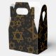 SlipperyJoe's Hanukkah-themed Star David artistic candlelight festive glow light and resilience themes modern reverent for Jewish holidays varying sizes metallic tones gold bronze deep brown rich black background evokes Hebrew tradition elegance symmetrical pattern gifts decorations rhythmic ceremonial visual flow significant symbol religion